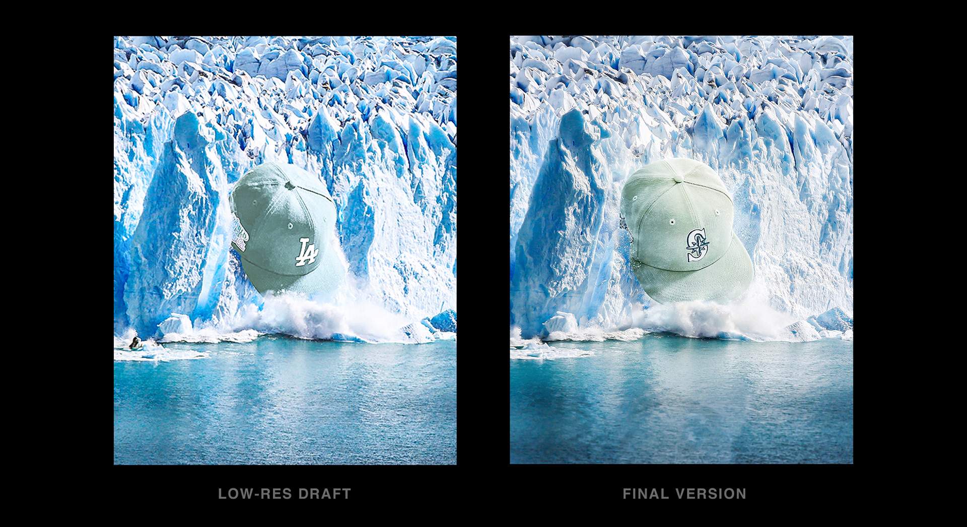 Once again, my friends at HATCLUB asked to work on another cool photo compositing project. This time is a collection of hats where the color way is inspired by GLACIERS.