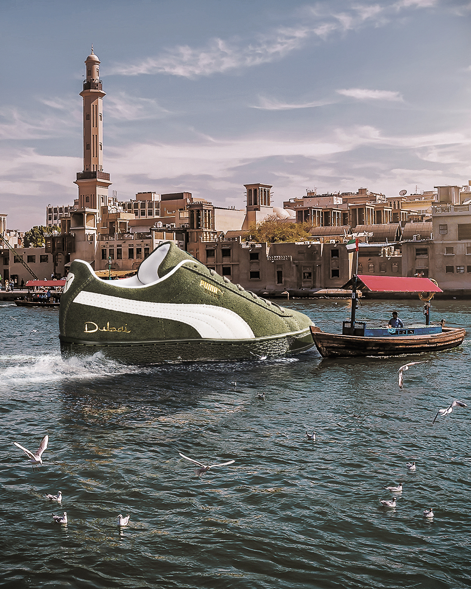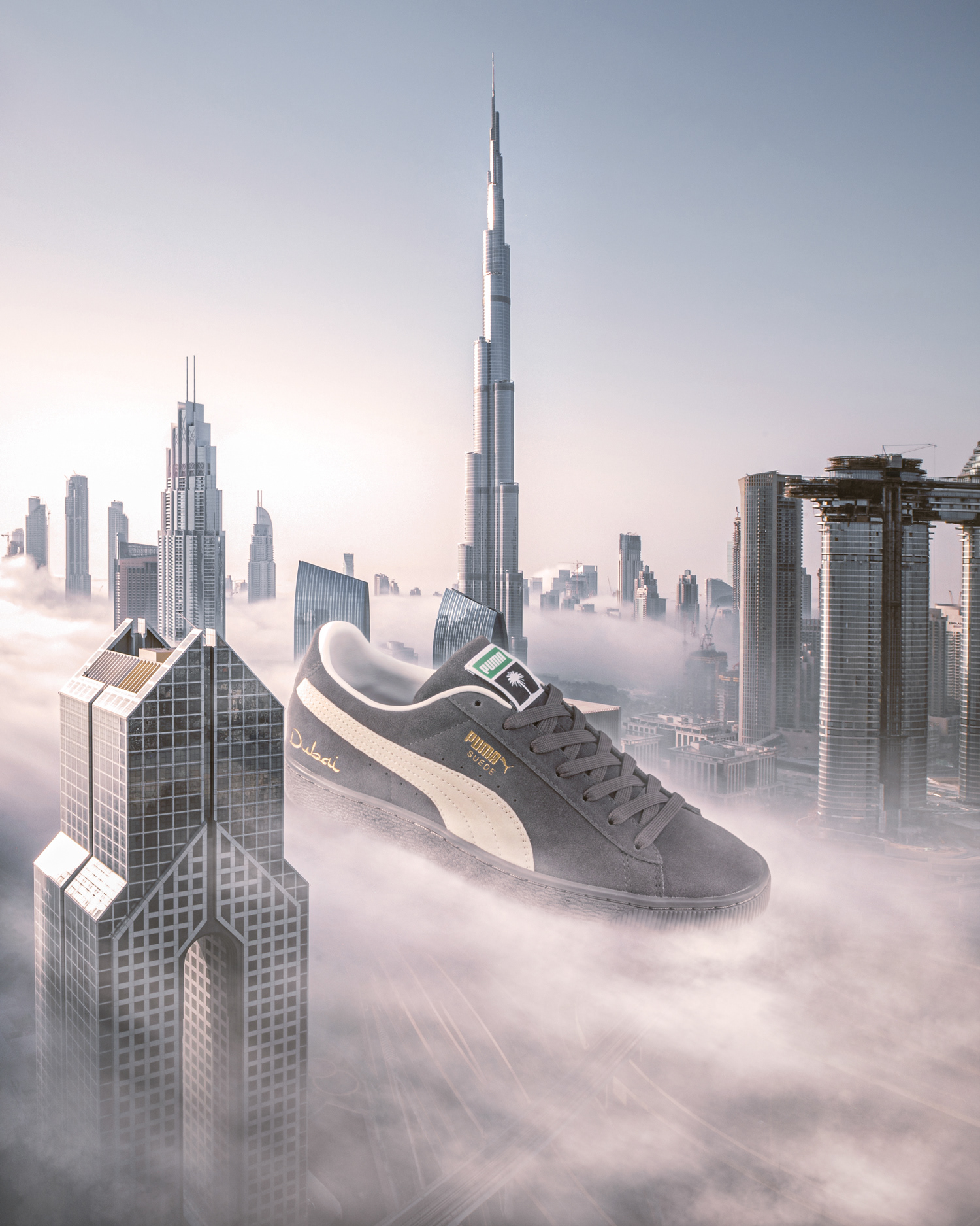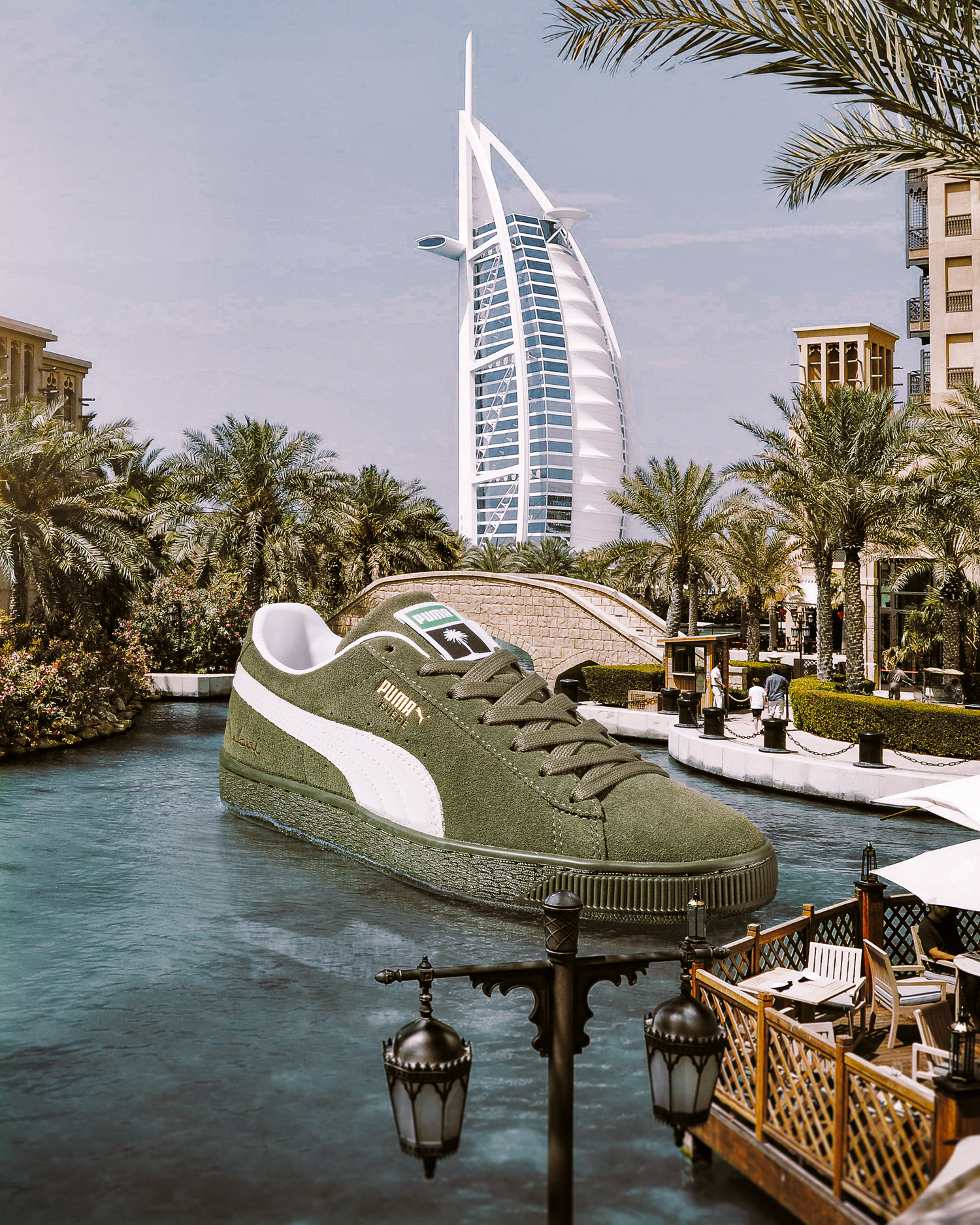 I was hired by PUMA Middle East to help them with the release of the PUMA Suede Dubai Exclusive. Given that footwear and sneakers are sort of my specialty and that I have worked for the brand before in multiple occasions; they considered me and my style to be was a good fit for this project. They wanted me to create some images depicting the 2 color ways of this iconic sneaker silhouette at specific and famous landmarks of Dubai.